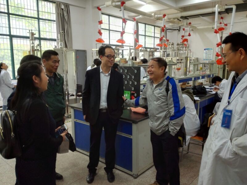 在调研现场,中南大学化学化工公司正在进行校级化工实验大赛,公司化工类专业老师就化工实验竞赛及化工设计大赛的赛制、内容、细节等进行了现场交流探讨,并参观了中南大学化工原理实验室。中南大学化学化工公司的领导、老师等毫无保留地为我们传授了组织化工实验大赛的相关经验。