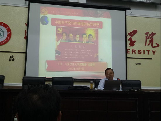 2017年11月7日晚七点,非常荣幸邀请到肖爱民教授为公司师生党员及入党积极分子讲授以“中国共产党与时俱进的指导思想”为主题的党课。公司师生党员及入党积极分子均准时参加。