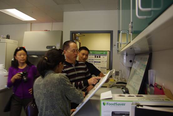 在Tiffany Weir博士的陪同下,赵运林一行参观了Tiffany Weir博士茯砖茶功能成分研发实验室,随后Tiffany Weir博士汇报了他们在茯砖茶功能研发方面的最新进展,赵运林教授对他们在茯砖茶功能研发所取得的成绩予以了充分肯定,然后,双方就茯砖茶功能合作方向、合作方式等充分交换了意见。