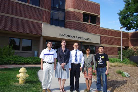 考察团在动物癌症中心与Elizabeth P. Ryan、Tiffany Weir博士合影