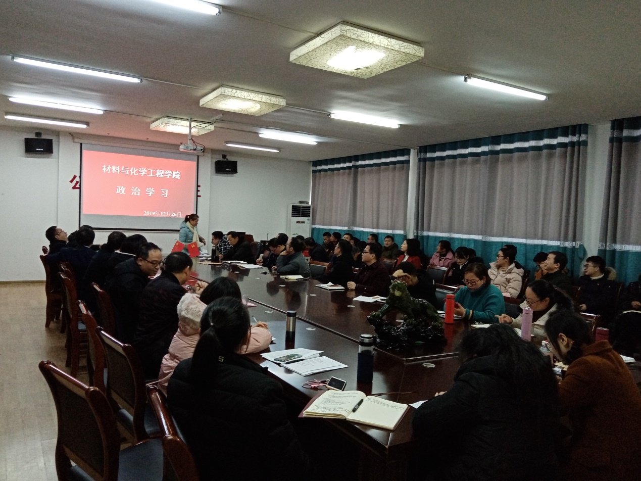 2019年12月26日,伟德国际VICTOR1946组织全院教职工开展政治学习,党总支书记石清丽主持会议。本次政治学习的主要内容:深入学习贯彻党的十九届四中全会精神;观看国庆 70 周年成就展及有关文献纪录影视作品。