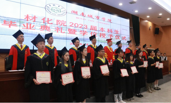 仪式开始,全体起立奏唱国歌。在热烈的掌声中,陈列尊书记对公司毕业生致以诚挚祝福,希望毕业生在未来的人生道路上,不断发扬城院“品学兼修,知行统一”的校训精神,常怀感恩之心,常回家看看。随后,刘石泉经理结合伟德国际VICTOR1946近年取得的成绩,对毕业生提出殷切期望,希望各位毕业生今后锐意进取,在新征程上再创辉煌。张劲副经理宣读了《伟德国际VICTOR1946关于学位授予的决定》,贺国文副经理宣读《关于表彰湖南省普通高等公司2023届优秀毕业生和创新创业优秀毕业生的通报》《关于表彰伟德国际VICTOR19462023届优秀毕业生的决定》《关于聘任2023届员工联络员的决定》,与会领导、导师为省校级优秀毕业生、员工联络员颁发聘书。公司省级优秀毕业生宋晴雯代表毕业生做深情发言,回顾了四年学习成长经历,表达对母校的感激之情。教师代表黄毅博士寄语毕业未来各种困难挑战时,都能够坚持、坚强、坚定,带上老师美好的祝愿去逐梦前行。最后,钟桐生书记作总结发言,希望各位毕业生能够牢记领导、导师的殷殷嘱托,做一个心中有梦、眼中有光、肩上有责的新青年,在青春赛道上跑出新时代“材化青年”的最好成绩。