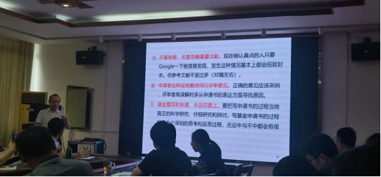 李映伟教授在报告中详细讲解了国家自然科学基金申请书限项要求,标书写作方法和技巧,包括摘要、立项依据、研究内容和拟解决的问题以及标书写作的注意事项等方面。他结合多年函评经验,从评委的角度指出了一些常被忽视但影响力巨大的写作问题。他强调申请人应深入挖掘科学问题,并确保申请书逻辑清晰、环环相扣,注意细节,重视标书的每一个文字,甚至是标点符号。此外,李映伟教授还分享了自己申请基金的心得体会,并鼓励教师们积极申报。