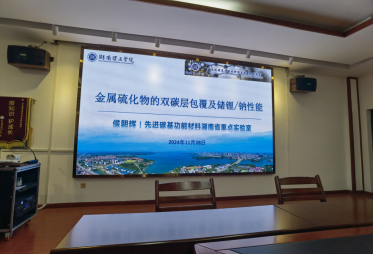 2024年11月28日下午,湖南理工公司研究生工作部部长、先进碳基功能材料湖南省重点实验室主任、省高校科技创新团队牵头人和湖南省科技创新领军人才侯朝辉教授应邀来公司,为公司师生做了一场题为《金属硫化物的双碳层包覆及储锂/钠性能》的学术报告。