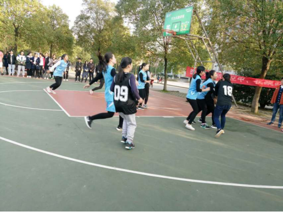 比赛开始的那一刻球员们的热情便被瞬间点燃,各种利落的进攻与巧妙的防守让在场的同学忍不住叫好。球员与球员之间配合默契,传球熟练,直逼篮板。展开了一轮又一轮的投球,球员动作干净利落,双方队员情绪高涨。在两院同学的共同呐喊助威下,球场气氛十分活跃。