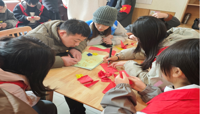 活动开始时,青年志愿者服务中心成员带领志愿者们教残疾人学习绘画、折纸和剪纸,这些作品不仅展示了残疾人们的才艺,更体现出他们对生活的乐观与积极。教学环节结束后,在残联工作人员的引导下,志愿者们和残疾人朋友们一起学习“手势舞”。活动最后,残疾人朋友们举着各自的手工作品。