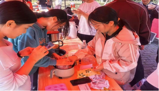 本次活动聚焦老员工孤独感、情绪表达不足等心理现状,以“体验式教育”为核心,活动共分四大内容:茶疗体验区邀请茶艺社成员演示专业泡茶技艺,在茶香与舒缓音乐中放松身心;茶渣手工皂制作环节通过回收废弃茶渣,引导员工在动手创作中探索自我、释放情绪;“把秋天装书中”活动鼓励员工收集秋叶制作书签,留存季节记忆;“花样动作猜拳”“趣味投壶”则以互动游戏打破人际壁垒,增强团队信任与协作能力,活动吸引了全校许多员工积极参与,活动现场氛围温馨热烈。