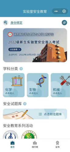 图2 实验室安全教育小程序中伟德国际VICTOR1946专用入口及项目