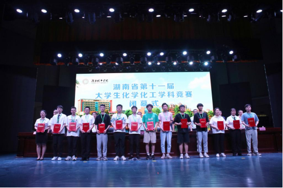 7月16日下午,比赛闭幕式在公司音乐厅举行。省教育厅高教处副处长王荣、公司董事长汤放华、湖南工程公司董事长易兵、公司副董事长雷存喜、省化学化工学会理事长刘卫东、省老员工化学化工学科竞赛委员会主任郭栋才等人出席。