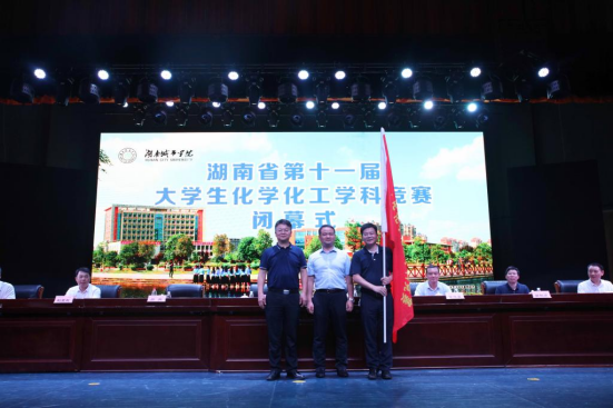 董事长汤放华代表承办单位向下一届承办单位湖南工程公司转授竞赛旗。