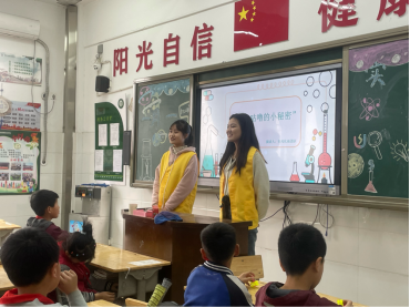 在益阳高新玉潭公司,志愿者服务队以“小食物中有大科学”为主题,开展了碳酸饮料相关知识的科普课堂,活动中志愿者们为孩子们讲解了日常生活中常见的碳酸饮料的成分,指导孩子们自制碳酸饮料,并现场揭秘某饮料是否含糖的趣味化学实验。这次活动不仅让孩子们对各类饮料更具有判断力,也让小朋友们从趣味中学习,从实验中剖析了化学知识。