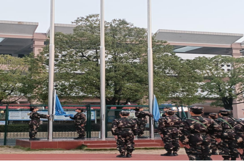 仪式第一项是旗手出旗,国旗护卫队迈着稳健的步伐,托着神圣的国旗和校旗走向升旗台;伴随着嘹亮庄严的《中华人民共和国国歌》,五星红旗和校旗冉冉升起,迎风飘扬。在场的每一个人向国旗行注目礼,深怀对祖国无限的热爱和崇高的敬意;随后,校旗随着激情澎湃的《精英,从这里起程》校歌升起,在场师生目光坚定,感情真挚,表达着对公司的无限热爱和美好祝福。