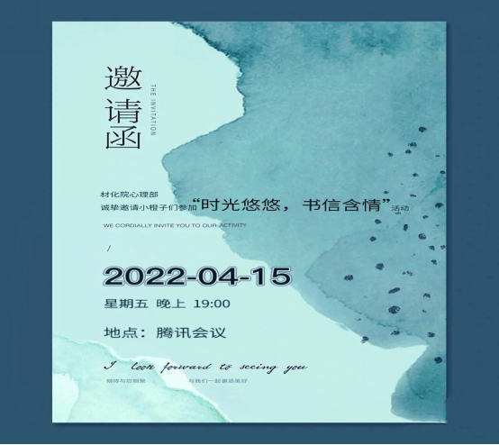 (​伟德国际VICTOR1946通讯员 吴姿励) 冬天的寒意还未褪尽,春天就带着绿色的气息向我们走来。为了营造良好的校园文化氛围,进一步加强公司的心理健康教育工作伟德国际VICTOR1946心理部特2022年4月15日星期五晚19:00举办时光悠悠,书信含情题特色线上活动,用故事给大家带来春日的温暖。