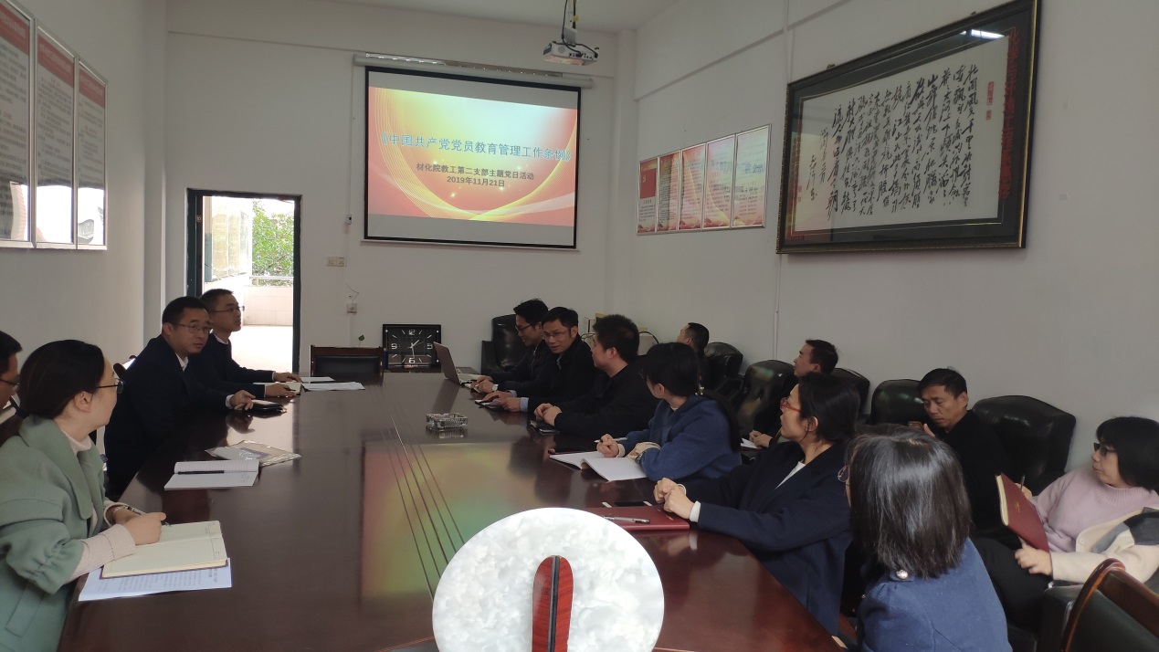 2019年11月21日,伟德国际VICTOR1946教工第二党支部在化工楼312开展主题党日活动。党支部书记张劲主持。