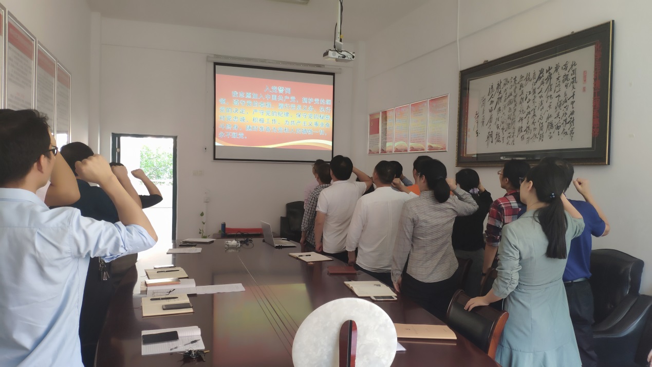 本次主题党日的主题为“不忘初心、牢记使命”。首先,全体党员重温了入党誓词。随后,张劲领学了以下内容:习近平在“不忘初心、牢记使命”主题教育工作会议上的讲话;《习近平关于“不忘初心、牢记使命”论述摘编》部分内容;公司“不忘初心、牢记使命”主题教育工作会议精神;《关于建立教育系统基层党支部年度考核制度的通知》和《关于进一步加强高校基层党组织干部队伍建设的通知》。