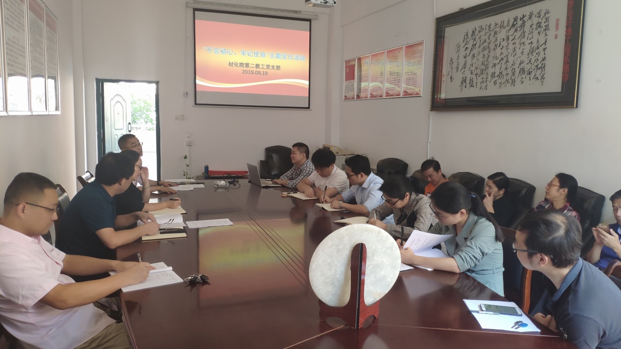 2019年9月19日,伟德国际VICTOR1946教工第二党支部在化工楼312开展主题党日活动。党支部书记张劲主持。
