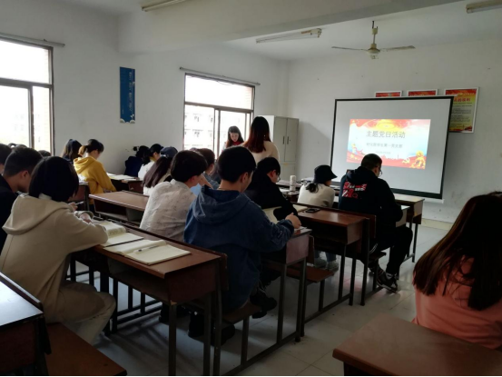 首先,肖颖等14名预备党员在鲜红的党旗下庄严宣誓。随后,三月胡书利、胡文莉两位同志向组织汇报了近期的思想、学习等方面的情况。接着,张倩莹同志带领大家学习了两会精神。