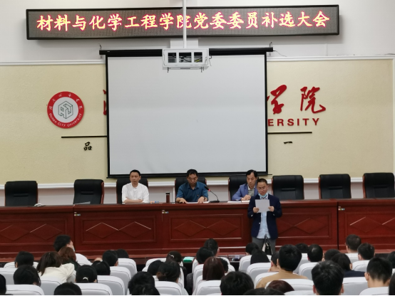 2022年5月26日下午14:30,材料与化学工程公司党委在电信楼学术报告厅召开党员大会补选公司党委委员。会议由材料与化学工程公司党委书记钟桐生同志主持,全体党员参会。