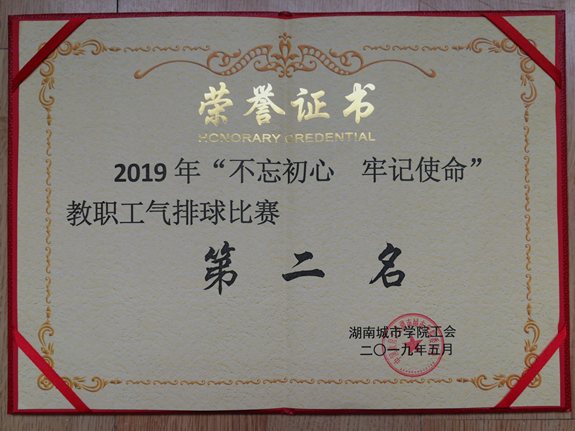 公司获2019年校教职工气排球赛第二名