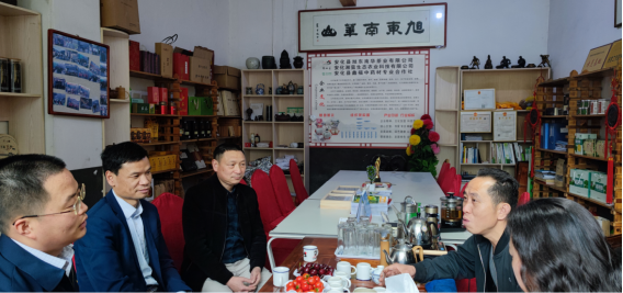 421日,黑茶金花湖南省重点实验室胡拥军教授、刘石泉教授、益阳市文化旅游广电体育局对口扶贫相关领导赴安化湘蛮生态农业科技有限公司就安化黄精开发进行调研,公司总经理夏铁钢、冷市镇镇长胡宝成热情接待了调研组一行。