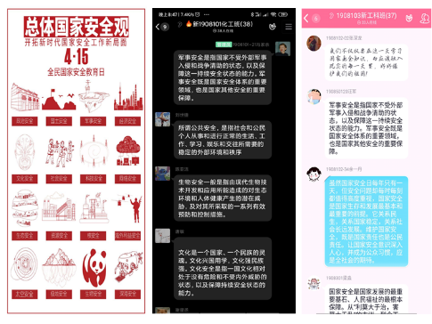 首先,全体师生在线观看公共安全领域专家范维澄先生的《总体国家安全观视角下的疫情防控》主题教育课。视频学习结束后,各班主持人以国家安全为切入点,通过视频和ppt的形式,向同学们介绍“全民国家安全教育日”的由来、设立的意义以及国家安全所涵盖的内容,让同学们对全民国家安全教育日有了进一步的认知。随后,主持人带领大家深入学习了解《国家安全法》、《反恐怖主义法》等具体的国家安全法律法规,进一步介绍了国家安全的基本原则以及当代老员工应当履行的义务,班会过程中,同学们在班级群里展开热烈讨论,纷纷发表自己的认识和感想。
