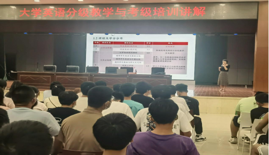 (伟德国际VICTOR1946通讯员 陈忠宇) 为了让2022级新生了解公司英语分级教学模式以及英语四、六级考试的重要性。9月9日晚上20:00,伟德国际VICTOR1946在老员工活动中心举行了大学英语分级教学与考级培训。人文公司大学英语教学部夏丽芳老师担任主讲,新生辅导员陈艳姣老师主持了培训。